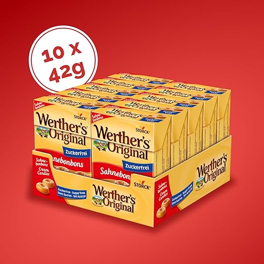 Werther's Original – 10 x 42g Box – Zuckerfreie Sahnebonbons mit leckerem KaramellgeschmackWerther’s Original – 10 x 42g Box – Zuckerfreie Sahnebonbons mit leckerem Karamellgeschmack